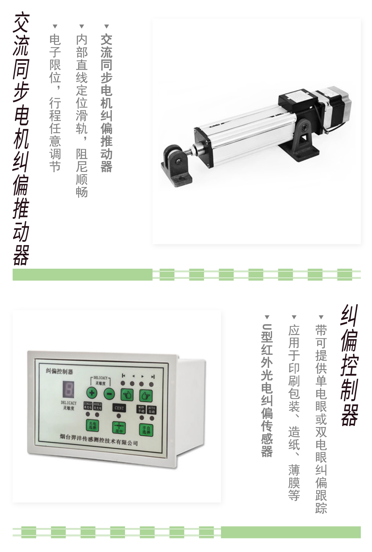 本系統(tǒng)中,由光電傳感器檢測邊緣位置或標(biāo)志線位置,以拾取位置偏差信號,再將位置偏差信號進行邏輯運算,產(chǎn)生控制信號,用交流同步電機驅(qū)動機械執(zhí)行機構(gòu),修正物料運行時的偏差。