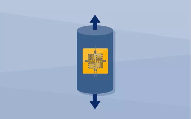 四個應(yīng)變計固定在下面的稱重傳感器上,當(dāng)施加力時發(fā)生最大的變形。 箭頭方向即為力的應(yīng)用方向。