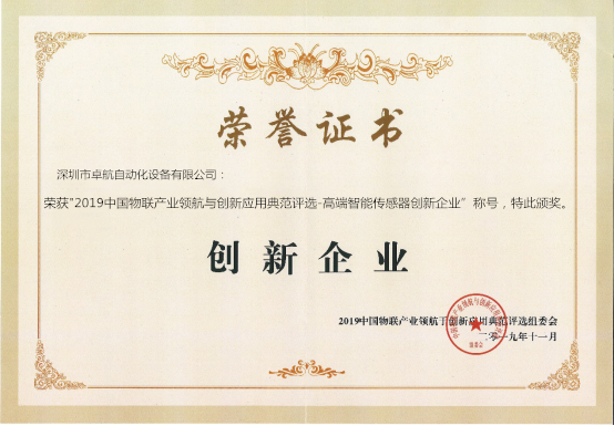 優(yōu)秀的創(chuàng)新產(chǎn)品往往離不開背后同樣優(yōu)秀的企業(yè),在產(chǎn)品獲得殊榮的同時,企業(yè)自然也不例外。本屆高交會期間,卓航精密斬獲“2019中國五連產(chǎn)業(yè)領航與創(chuàng)新應用典范評選——高端智能傳感器創(chuàng)新企業(yè)”稱號。